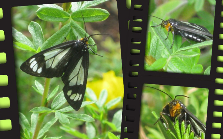 Gnophaela vermiculata (Police Car Moth)Photos by P. Meyer August 11, 2010 - Calgary, Alberta, Canada. 1,083 metres (3,553 ft) 24 degrees C Resting on Potentilla.